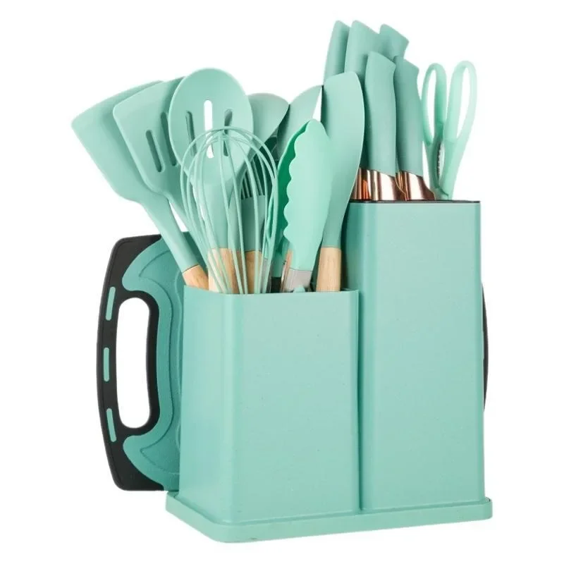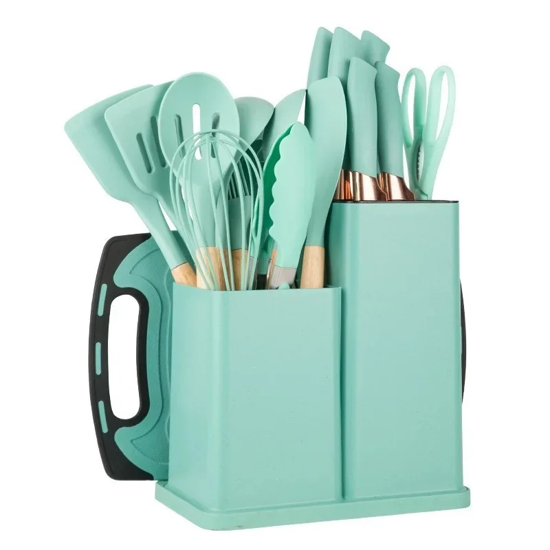 19-Piece Set Silicone Cooking Utensils Non-Stick Pan with Storage Bucket Knife Set Combination Kitchen Tools Home Goods19-Piece Set Silicone Cooking Utensils N...