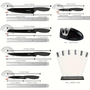 Kitchen knife 7-piece set, black professional stainless steel chef's knife with holder set home rust-proof and sharp meat cutterKitchen knife 7-piece set, black profess...