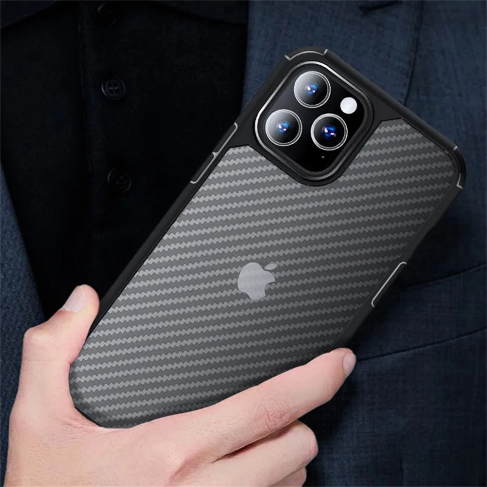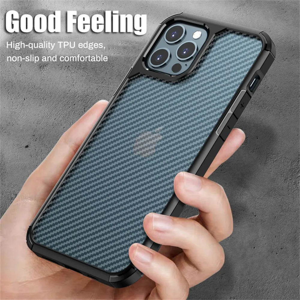 Military Grade Carbon Fiber Pattern Armor Case for iPhone 15 14 13 12 11 Pro Max Plus X XS XR 7 8 SE Clear Shockproof Hard CoverMilitary Grade Carbon Fiber Pattern Armo...